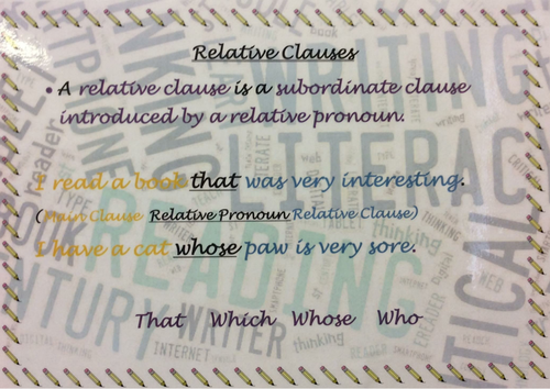Defining relative clauses these describe the preceding noun in such a way to distinguish it from other nouns of the same class. Defining relative clauses (also called identifying relative clauses or restrictive relative clauses) give detailed information defining a general term or expression. Relative clauses allow us to provide additional information without having to start a new sentence. What is a relative clause? Choose from 500 different sets of flashcards about relative clauses on quizlet. We use relative clauses to make clear which person or thing we. A relative clause is a sentence describing a noun, however, it cannot be used separately. Learn about relative clauses with free interactive flashcards. It is also called adjective clause because it defines a noun. It comes after the noun defined by a basic sentence. Relative clauses describe or provide information about someone or something (a noun or noun phrase) that has usually already been specified A relative clause is a subordinate clause that contains the element whose interpretation is provided by an expression on which the subordinate clause is grammatically dependent. Relative clauses tell us more about there are two kinds of relative clause:
